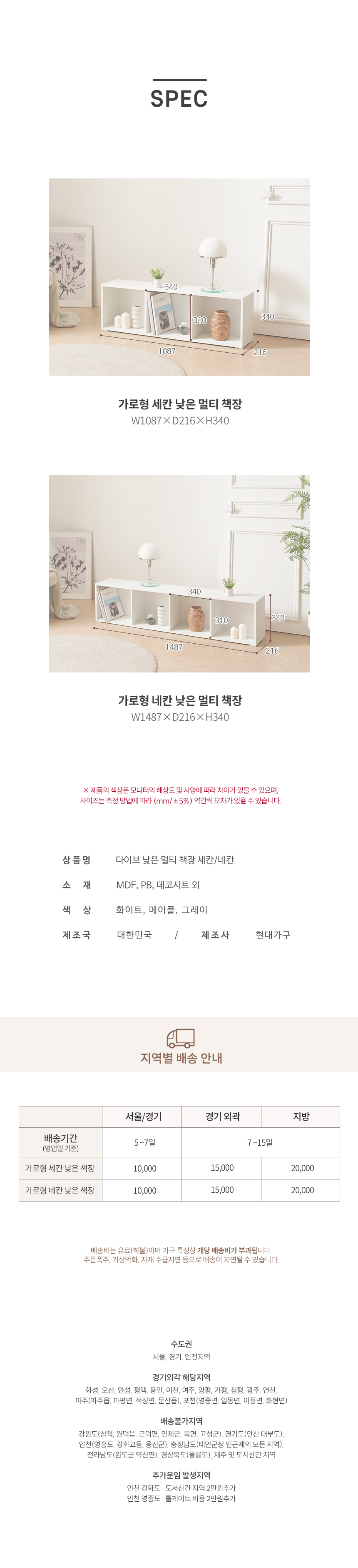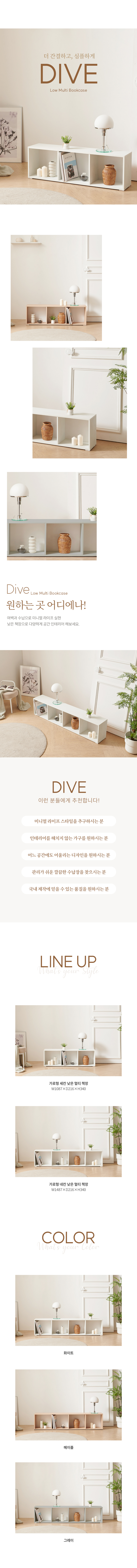 다이브 가로형 세칸 네칸 낮은 책장