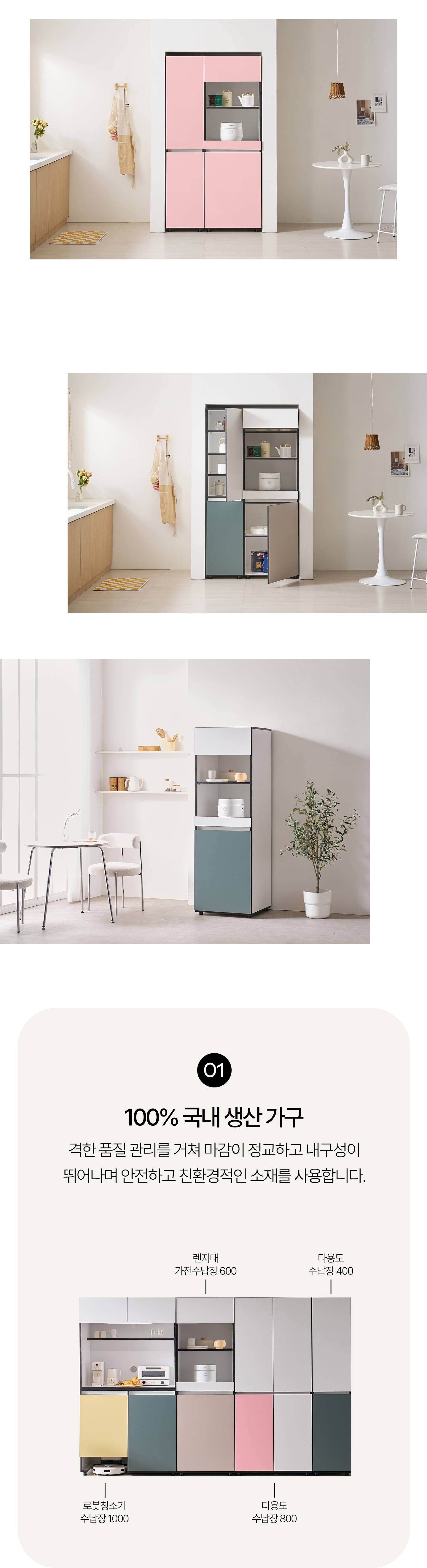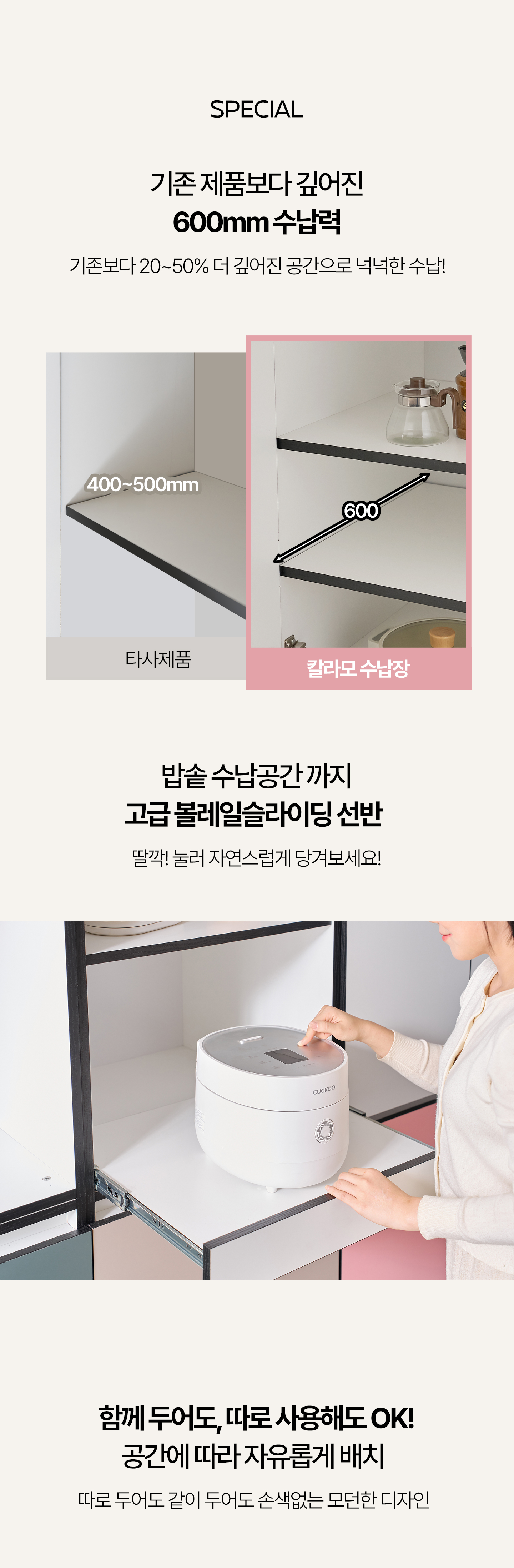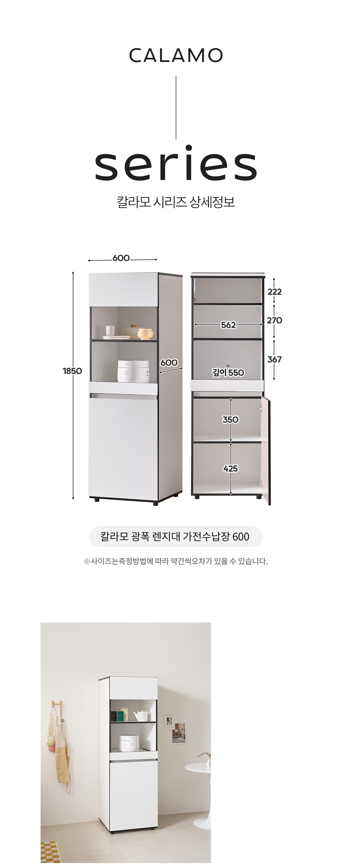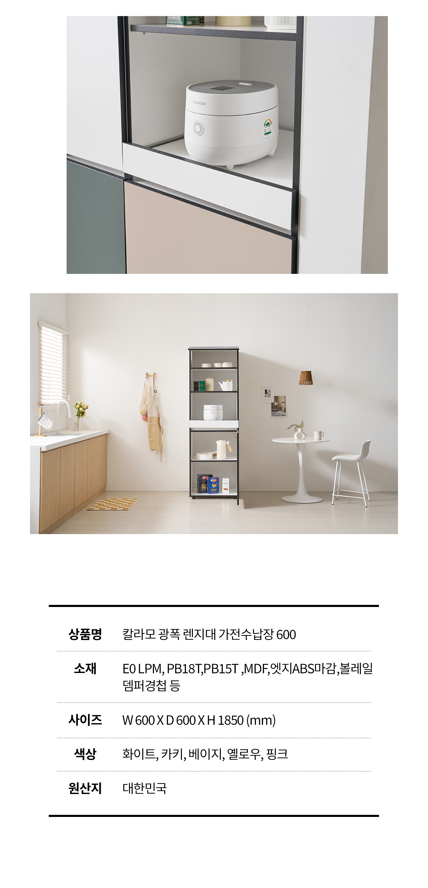 칼라모 광폭 틈새장 키큰장 주방수납장 밥솥장 렌지대 600